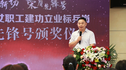 图为山东省总工会选派济南嘉乐生殖医院工会工作指导员、省国防机械电子工会二级调研员倪道余同志在颁奖仪式上讲话